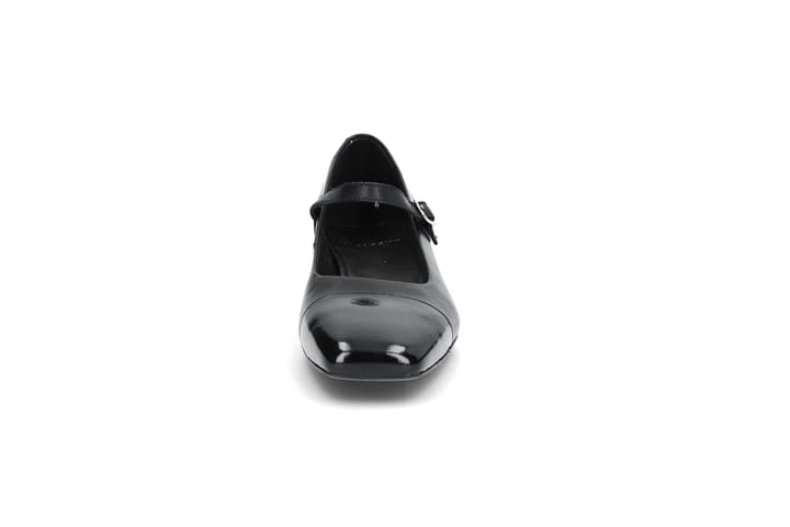 Vagabond Shoemakers Debbi er en klassisk Mary Jane-pumps, med en sofistikert vri. Modellen er laget i sort skinn, med en firkantet tåform i lakkert skinn. Justerbar ankelrem med sølvarget spenne, og innsersåle i skinn for økt komfort. Hælhøyde 25 mm.